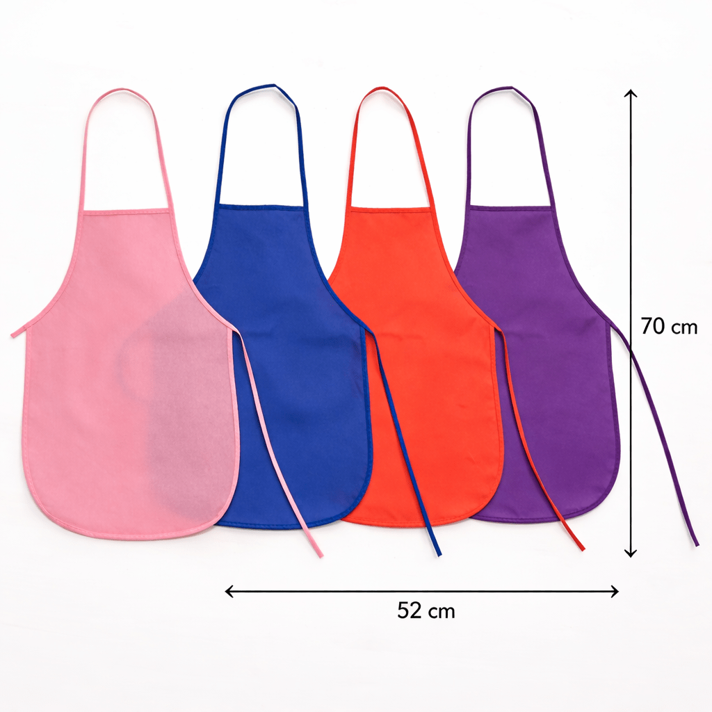 Põlle mõõt on 52 × 70 cm, mis tagab hea katvuse ja kaitse kuni 10-aastasele lapsele. Kerge ja hingav mittekootud polüestermaterjal on nahasõbralik ning mugav kanda ka pikema aja jooksul. Materjal hülgab mustust ja vett, aidates vältida värvi, vee ja muude vedelike imbumist riietesse.