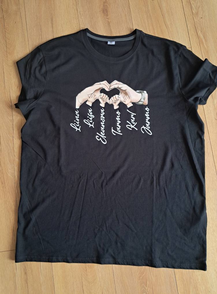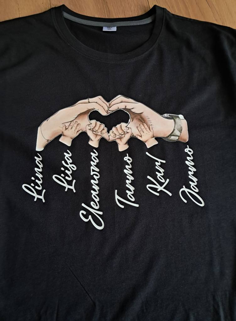 T-särk isadepäevaks, käed ja süda, laste nimedega